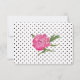 Stylish and romantic wedding response card done in white background, with tiny black polka dot pattern, along the bottom and covering the back of the card. Beautiful watercolor artwork of pink peony flowers, decorates the bottom middle of the front. Personalise the black text for your special day. Matching products are available.