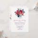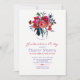 Floral graduation party / celebration invitation template with a beautiful peony roses bouquet of red, burgundy, pink blush, magenta, midnight navy blue and violet purple bohemian flowers, feathers and foliage with a fancy modern contemporary changeable script text. -------- The invitation is ideal for bohemian rustic spring or summer floral outdoor /backyard garden modern elegant grad party.
