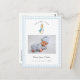 Cute watercolor Peter Rabbit baby boy Thank you Birth announcement postcard with photo and birth stats with Blue and white gingham border.
