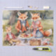 Step into a whimsical world where forest creatures frolic amidst a lush, sun-dappled clearing. Delicate watercolor strokes bring to life a serene picnic scene, where squirrels nibble on acorns, rabbits share a laugh, and birds chirp harmoniously overhead. The fusion of decoupage layers adds depth and texture, enhancing the magical aura of this woodland rendezvous. Each detail invites you to pause, breathe in the tranquillity, and join the charming company of nature's gentle inhabitants.