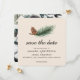 Winter Pine Branch and Pine cone Watercolor Wedding Save the Date with cream / ivory background. Perfect for your winter wedding or a woodland wedding. Original hand painted watercolor artwork. Colours are in the artwork are different rustic shades of greens and browns. Add a full photo on the back For enquiries about custom design changes by the independant designer please email paula@labellarue.com BEFORE you customise or place an order. Original art hand drawn by La Bella Rue © Copyright, all rights reserved.
