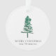 Modern Christmas ornament featuring a simple design with my handpainted watercolor pine tree along with the editable greeting "Merry Christmas". Use the template to add a photo to the back.