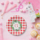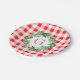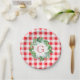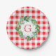 Watercolor Pine Wreath MONOGRAM Red Check Round Paper Plate