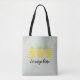 This fun and summery tote bag features an adorable trio of watercolor pineapples and a green and white pinstripe background. Personalise with your child's name.