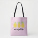 This fun and summery tote bag features an adorable trio of watercolor pineapples and a pink and white pinstripe background. Personalise with your child's name.