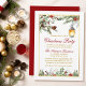 Watercolor Pines Poinsettia Christmas Party Gold Invitation