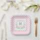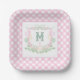 Watercolor Pink 1st Birthday Monogram Crest Party Paper Plate