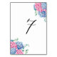 Watercolor Pink and Blue Hydrangeas Table 7 Table Number