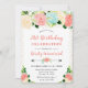 Watercolor Pink and Mint Flowers 21st Birthday Invitation