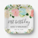 Watercolor Pink and Mint Flowers Birthday Paper Plate