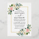 Modern Elegant Watercolor Pink White Floral Wedding Invitation includes pink roses, white flowers and botanical greenery. Gold Foil Frame. Pink Blush Back.