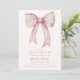 Baby Shower invitation featuring a watercolor pink bow. Personalise with your information or click "Click to customise further" to edit font styles, size and colours.