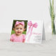 Watercolor pink bow girl birthday party thank you card
