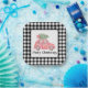 Beautiful watercolor Christmas tree on a pink car. The background is black and white Christmas plaid