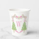 Watercolor Pink Christmas Tree Monogram Crest Paper Cups