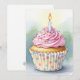 Watercolor-style birthday invitations featuring a delicate pink birthday cupcake with lit candle