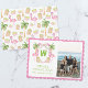 Watercolor Pink Flamingo Christmas Monogram Crest Holiday Card