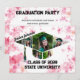 A unique graduation party invitation featuring 6 photos designed into the shape of a graduation cap on a pink watercolor floral background. Personalise it with your name, graduation year, and school. Include your party details on the back. All text is editable. The photos can be adjusted with the design tool if needed. If you need help with the design or matching products please email Brandi@photobooksbybrandi.com