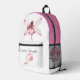 Watercolor Pink Flower Fairy Magic Wand Mushroom Printed Backpack