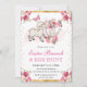 Elegant Watercolor Pink Flowers in Watering Can and Cute Lamb with Butterflies design with gold foil borders and glitter confetti