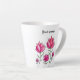 Pink flowers personalised latte mug with a beautiful ink and watercolor illustration of abstract flowers over clean white background.