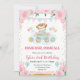 Watercolor Pink Flowers Monkey Kids Birthday Invitation