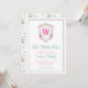 Watercolor Pink & Green Golf Cart Monogram Crest Invitation