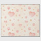 Watercolor Pink Hearts & Paw Prints Pattern Wrapping Paper