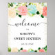 Watercolor Pink Mint Flowers Sweet 16 Welcome Poster