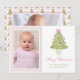 Watercolor Pink Nutcracker Christmas Tree Photo Holiday Card