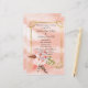 Beautiful pink Watercolor Pampas Grass with a Feather nestled on a gold ornate frame. A background of golden clouds finishes the invitation.