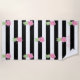 Watercolor Pink Pineapples, Black White Stripes Beach Towel