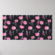 Watercolor pink poppies and floral branches seamle poster