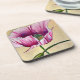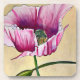 Watercolor pink poppy art flower coaster