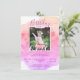 Lovely modern watercolor design birthday party invitation cards for a little one year old girl (change to any age) - 1st year. Pastel colours in pink, purple, violet, peach, orange, and white colours. Personalise by adding your PHOTO. picture, image. Back of card has option to add name with large birthday number. This custom invite is perfect for any birthday theme and AGE!