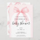 Watercolor Pink Ribbon Bow Baby Shower Invitation