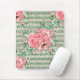 Watercolor Pink Roses on Green Glitter Stripes Mouse Mat