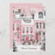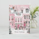 Watercolor Pink Script Village Non Photo Christmas Holiday Card