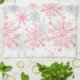 Watercolor Pink & Silver Glitter Winter Snowflakes Tea Towel