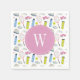 Watercolor Pink Tennis Pattern Monogram Napkin
