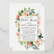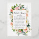 Modern Elegant Watercolor Pink White Floral Bridal Shower Invitation includes pink roses, white flowers and botanical greenery. Trendy Calligraphy Script. Gold Foil Frame.