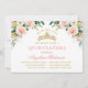 Watercolor Pink White Floral Gold Quinceanera Invitation