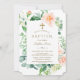 Watercolor Pink White Flowers Frame Baptism Invitation
