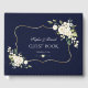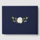 Elegant card design featuring watercolour delicate white flowers and green leaves, a faux gold frame, floral divider, on a dark blue background. On the back white flowers bouquet. Use Personalise tool to add your info, change fonts, font's colours. For matching items, please, visit my Delicate White Flowers Collection.