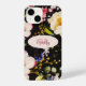 Watercolor Pink Yellow Roses on black, Monogram iPhone Case