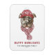 Happy Howlidays! Send your holiday wishes to family and friends with this customisable holiday magnet. It features a watercolor pitbull wearing a knitted hat and scarf. Personalise this pitbull holiday magnet by adding your details. This dog Christmas magnet is available on other cardstock.