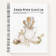 Stylish recipe notebook with a lovely rustic watercolor image of a ceramic water pitcher filled with kitchen gadgets and surrounded by baking ingredients like eggs and flour. Can be customised.