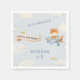Up, up and away! Celebrate the birthday boy with this cute aeroplane-themed party napkin featuring a fox flying a plane, cheerful birds, and soft watercolor clouds. Personalise the text to suit your little boy's party details.