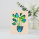 Watercolor plant art green and blue abstract postcard