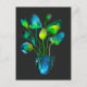 Original watercolor art of abstract drip art style green and blue plant. Vibrant and modern. Modern funky art.
